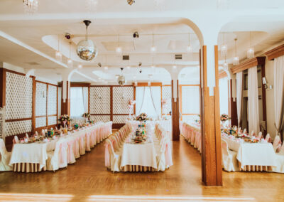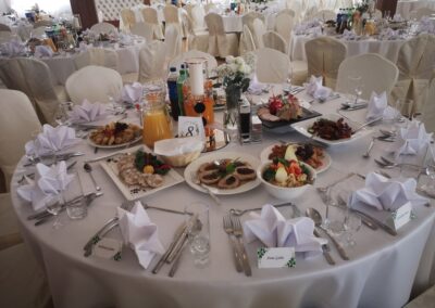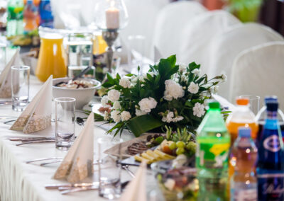 Organizujemy zarówno rodzinne uroczystości – takie jak wesela, chrzciny, komunie czy jubileusze – jak i spotkania firmowe: bankiety, szkolenia czy kolacje integracyjne. Każde wydarzenie traktujemy indywidualnie, dbając o każdy szczegół – od wystroju sali, przez menu, aż po atmosferę, która pozostaje w pamięci na długo.
